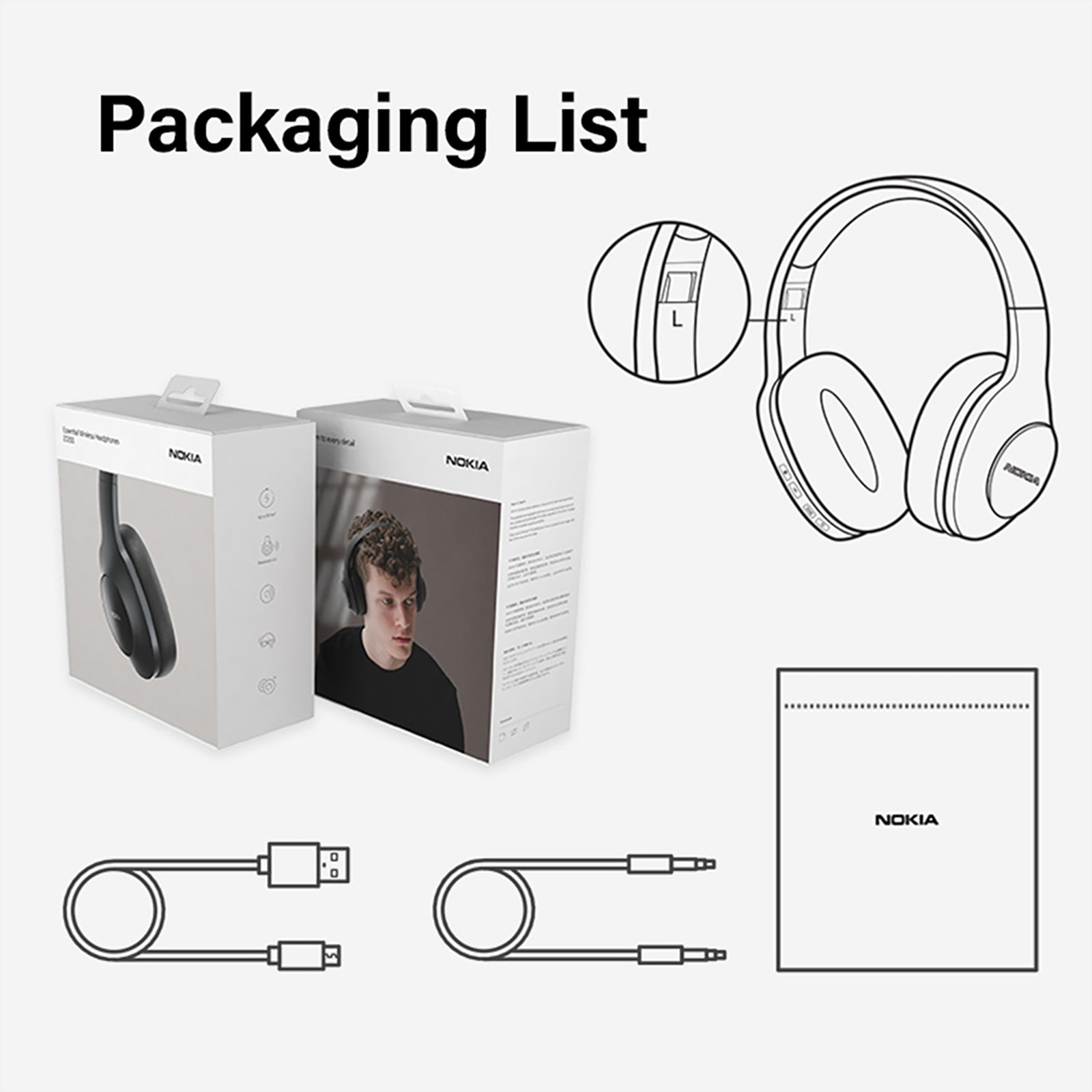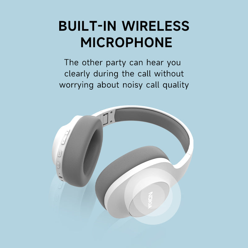 Wherever you are, get your groove on with a super portable headband that’s lightweight, foldable and stylish. - With the Nokia Essential Wireless headphones, you can listen to music wirelessly for 40 hours, or connect the 3.5 mm cable to listen to it even longer.