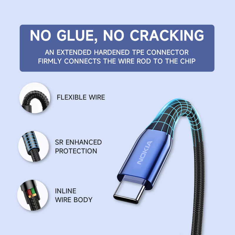 The extra-long (2m) flexible joint and the zinc alloy connector extend the lifespan of the cable. It's so durable, it will likely outlast your devices.