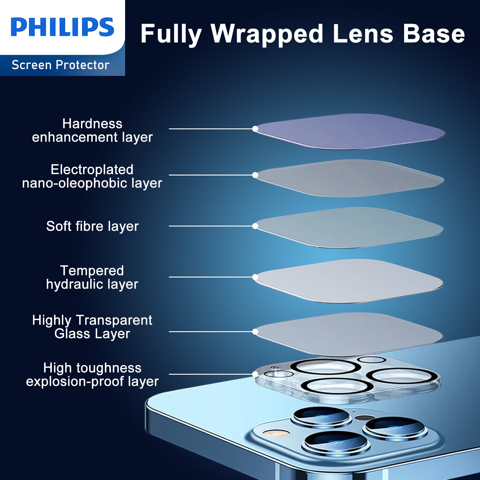 ¡¾360¡ãFull Adhesion, No Interference with Phone Case¡¿ Full coverage of lens base? allow it to withstand side impacts without interfering with the phone case. The plasma oleophobic oil-repellent and waterproof coating adheres to the phone screen in a 360¡ãall-around manner, resisting oil, water, fingerprints, scratch and abrasion.